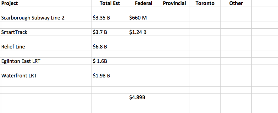 The $ committed to Toronto/GTA (including Metrolinx) are $6.2B using the same formula as above this is 17.5B for the GTA.