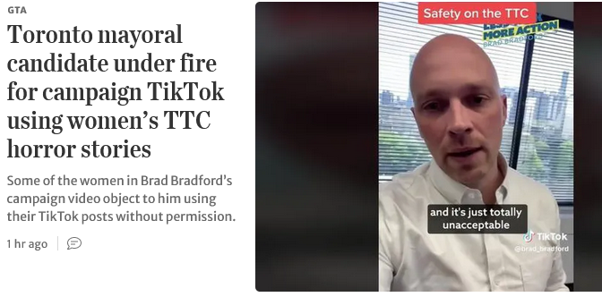 Caught a brief blurb of Saunders campaigning on the news last night. The target of his ire? Bike lanes. He said he would remove the bike lanes on University, reverse the decision to make the ones on Yonge Street permanent, and cancel the installation of all proposed bike lanes everywhere in the city. All in the name of "fighting congestion".