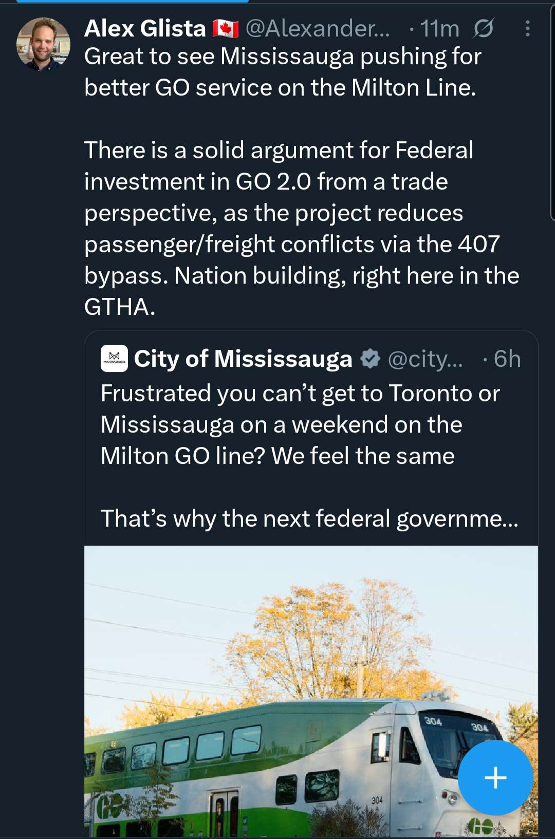 It be stated at council that it is late and over budget. The photo show 3 CN trains and where do you place the other 2 tracks for CPKC without tearing the bridge down and rebuilt it???Funny that the new overpass is being promoted as "helping the area [Malton] become less isolated from the rest of Mississauga" considering north of it is all Brampton.