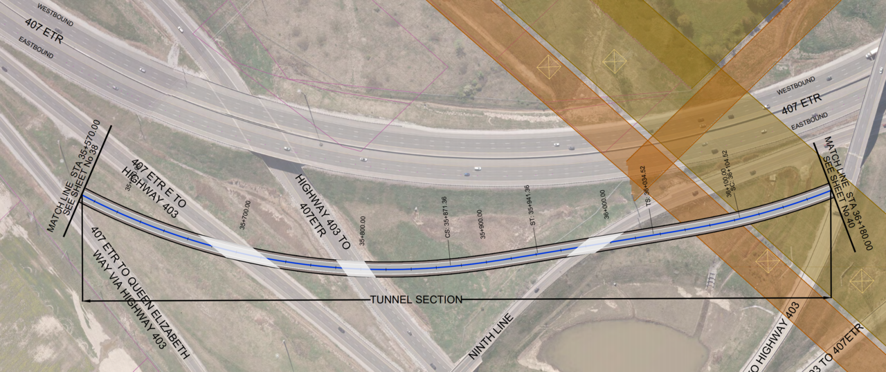 The EPR also shows tunnels going under the 403/407 interchange (I would imagine this would be cheaper to do as a big flyover? Seems unnecessary to tunnel):