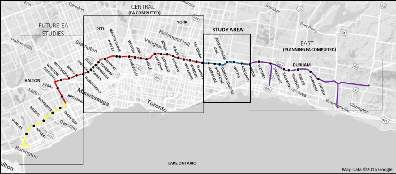 The central section is the most obvious for sure. With the metro version, do note that this is not the actual alignment though. Everything west of MCC and east of Markham Centre is hugely long-term, unless the municipalities pitch in. I would be ok with only prioritizing the central section within 20 years, and pushed off the rest for a bit. Keeping it as a single-phased project is asking for problems.