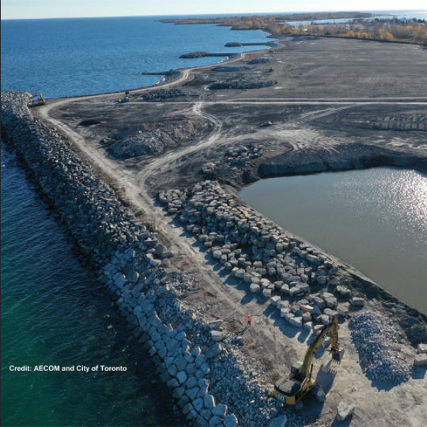 Progress on the two breakwater structures also continues. The East Breakwater located on the southwest portion off Ashbridges Bay Park was substantially completed in December 2020. Construction of the Central Breakwater commenced in January 2021 and will continue through in the new year.