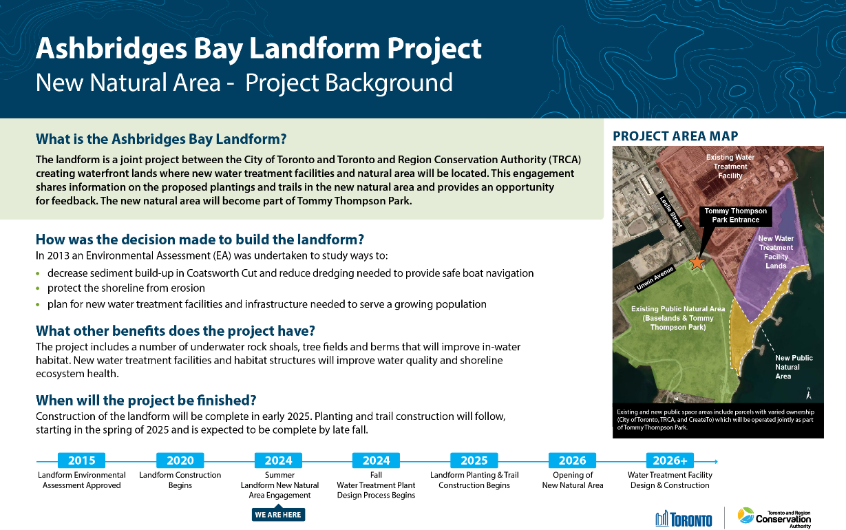 Toronto and Region Conservation Authority (TRCA) completed the perimeter of the Landform structure, effectively isolating it from Lake Ontario, in June 2021.
