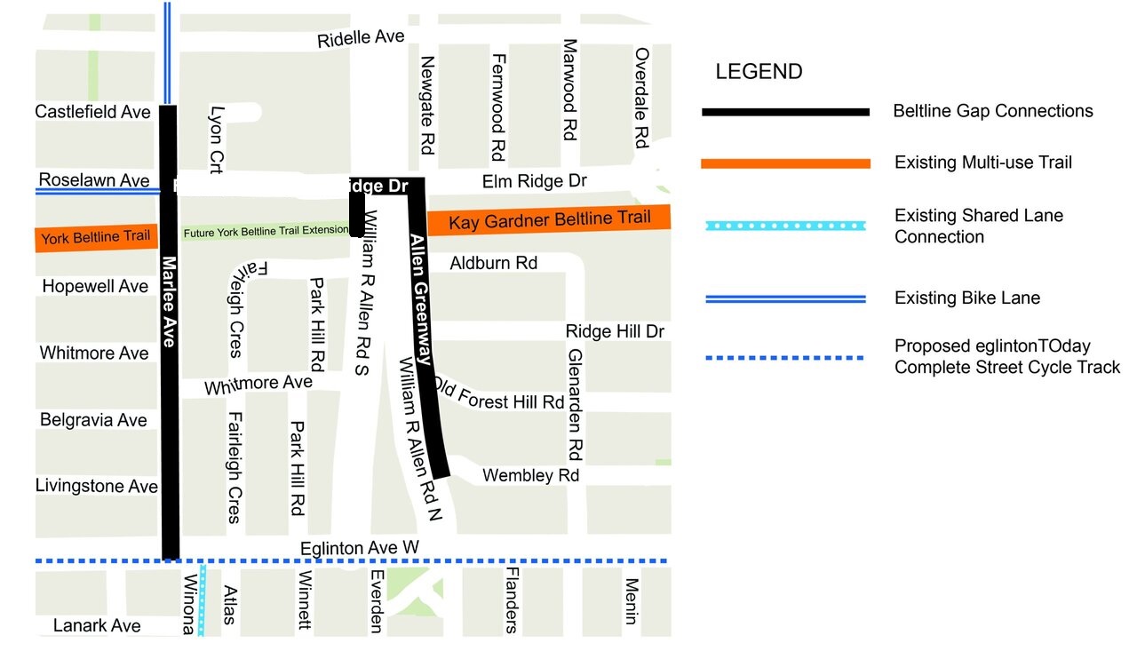 And put a Bikeway on the Allen Path on the west side connecting to the new York Beltline Trail extension.
