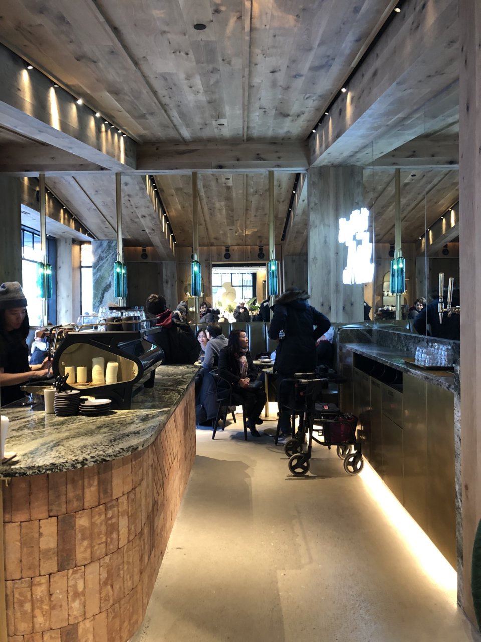 looks like loads of fun (pic #2) - one person taking a picture (probably on a phone) of 6 people on their phones, one person whose back is turned - likely on their phone, and one gal biting her nails! (probably not knowing what to do not being on her phone!)Indeed; it’s quite nice. The cafe is cute, and accessible both from Bloor and from inside the store.