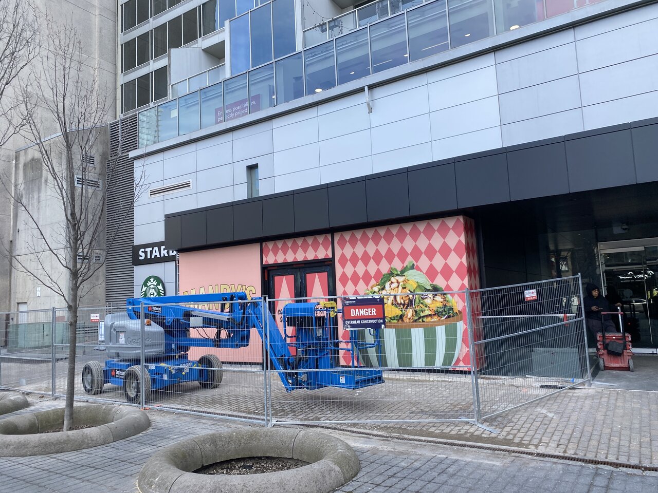 The construction hoarding went up over the weekend, along with the Mandy's graphics.