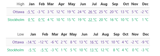 Lets compare actual day to day weather/climate: Ottawa vs Stockholm:
