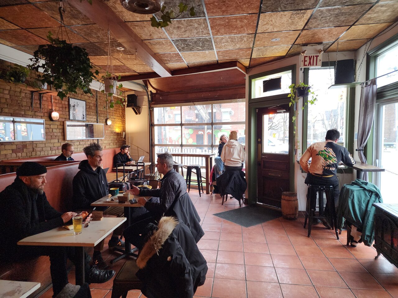 The patio is really pleasant in the summer and the whole side of the building opens up, so it's just like being outside. Wonderful place. You can get a freshly baked croissant and some fresh fruit compote for about $5, which is a steal these days.