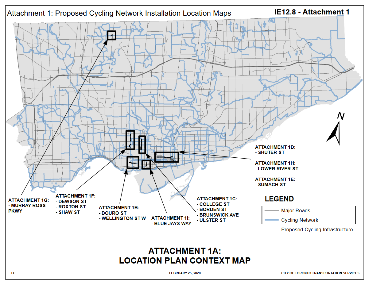- Shuter Street (bicycle lane to cycle track: Ward 13)
