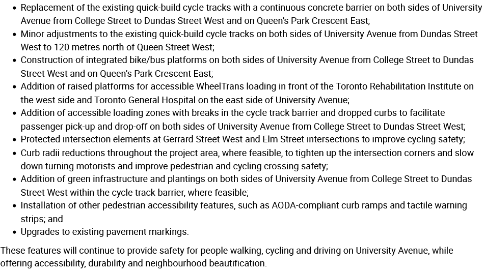 Your video doesn't go east to Spadina, where the last block before the switch to curb-protection has no bike lanes or infrastructure of any kind. This is a narrow section, due to the streetcar loading platforms in the roadway, which likely prevents protected lanes from being installed. But it's still a downgrade from a few months ago when we had at least painted lanes and a green bike box eastbound at the College/Spadina intersection.