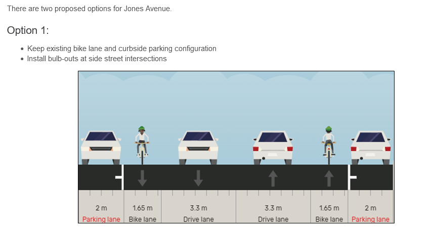 I used to cycle and drive on Jones quite often up until the pandemic. Since our office moved to Kingston Rd in Scarborough and moving from Jones/Danforth to Woodbine/Danforth, I rarely use Jones at all. But when I did cycle on Jones, I never found it to be too bad. Not great with potential doorings and poor road surface, but as Jones isn't as busy as some of the other main north-south roads between the Don and Woodbine, I never felt unsafe riding in the bike lanes in relation to vehicular traffic. Still, upgrades to cycle tracks are always welcome.
