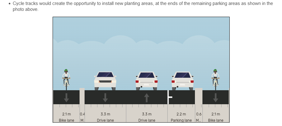 We can confirm that the section you mentioned is narrower in that specific stretch, accommodating the TTC stop. As a result, there is no planned new separation for the bike lane in that area.