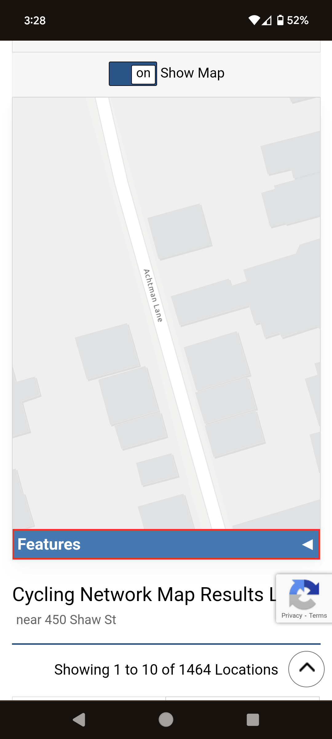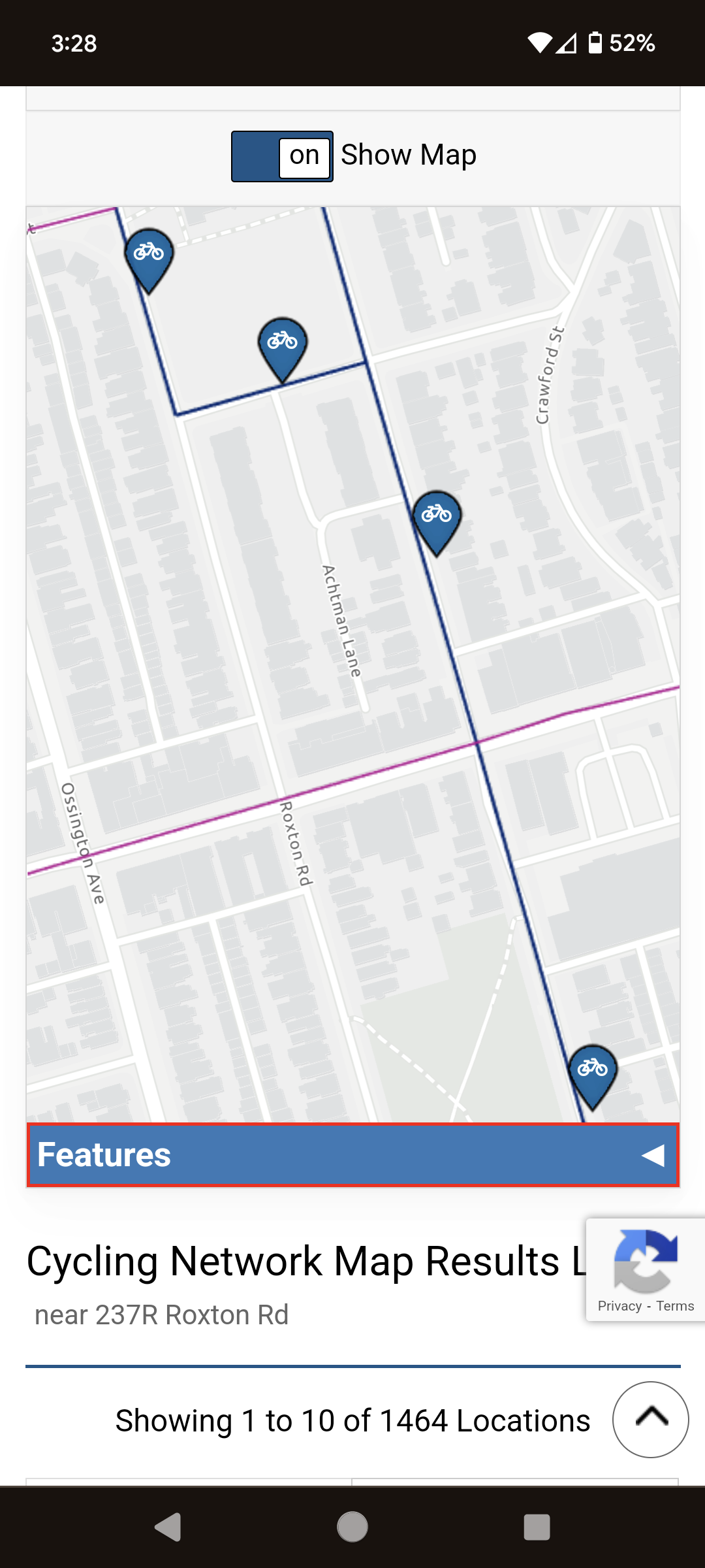 The lack of full-screen? The bizarre clustering of bike lanes into single pins with a number when zoomed out? These things make no sense in the context of this mapping tool.