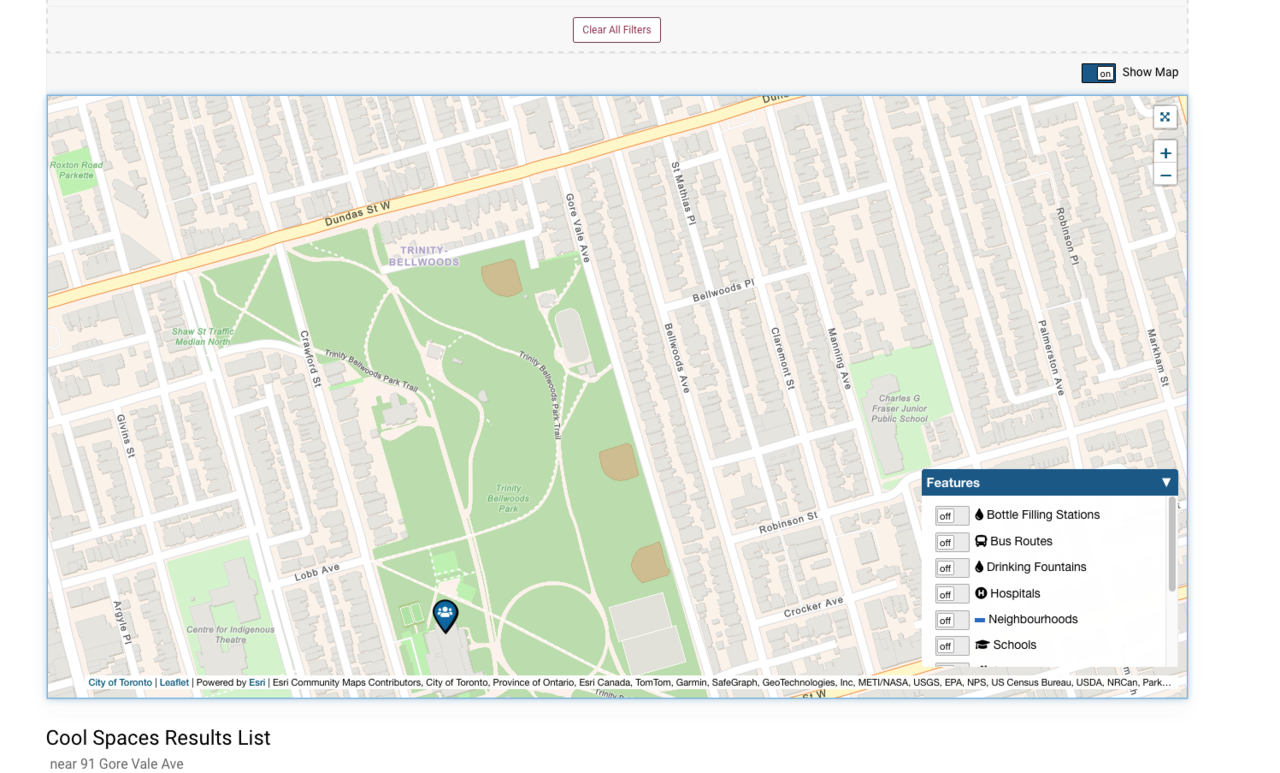 You can see both are ESRI maps with all the same deets at the bottom. BUT the cycling map has a smaller window, with no full-screen button. The cooling map is bigger and has such a button.