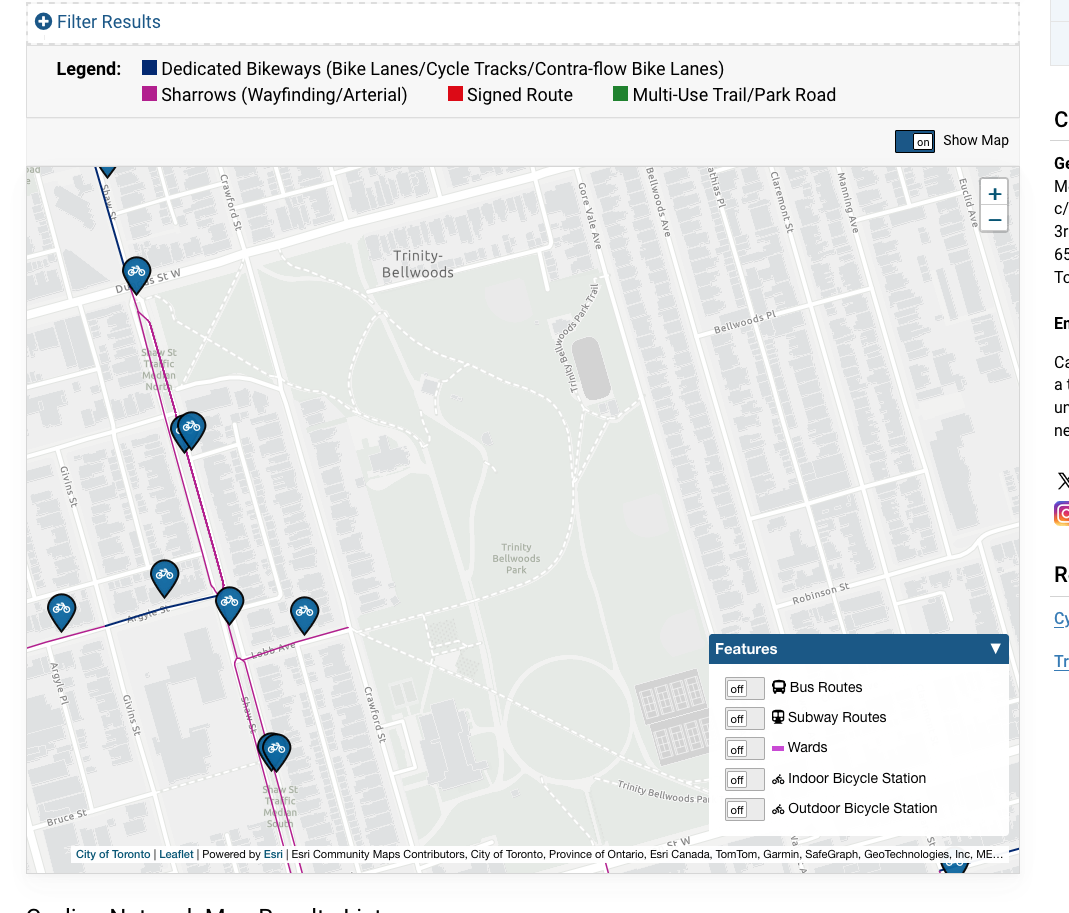 Agreed with most of what you said.The city's "new" ESRI-based cycling network map that replaced their old Google Maps one has been brought up a bit recently. I've been trying to make the most of it, and appreciate the work that went into building it.