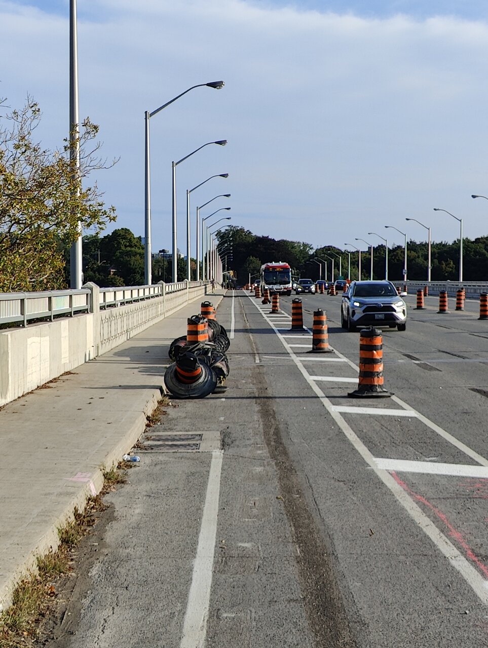 Back to the Millwood/Pape/Donlands intersection. Most of the construction/painting there seems done, though there is still only one car lane SB. However, they have widened the bike lanes on the bridge itself, at the cost of one of the 3 NB lanes (which were never busy). Painted infrastructure for now, hopefully concrete dividers soon? (Pylons still present. I seem to recall there may be bidirectional cycle tracks here, not sure if that's still on).