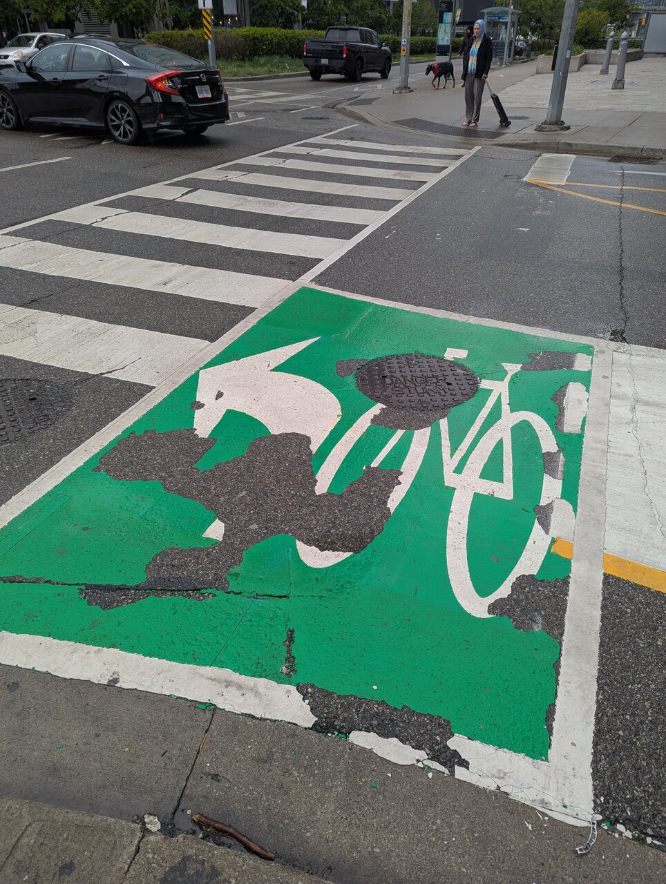 Anytime they use concrete for bike paths, or even mixed use trails, they need to like paint them green or put bike chevrons on them. I've been yelled at by pedestrians to not bike on the sidewalk when it was actually a cycle track because it was concrete.