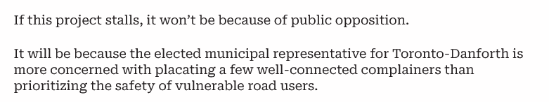 An update on the University Avenue / Queen's Park cycle track upgrades (east side). I inquired with the city about the construction timeline and they've responded. This section is under the most threat of this populistic provincial government. Therefore, let’s read the following statement carefully: