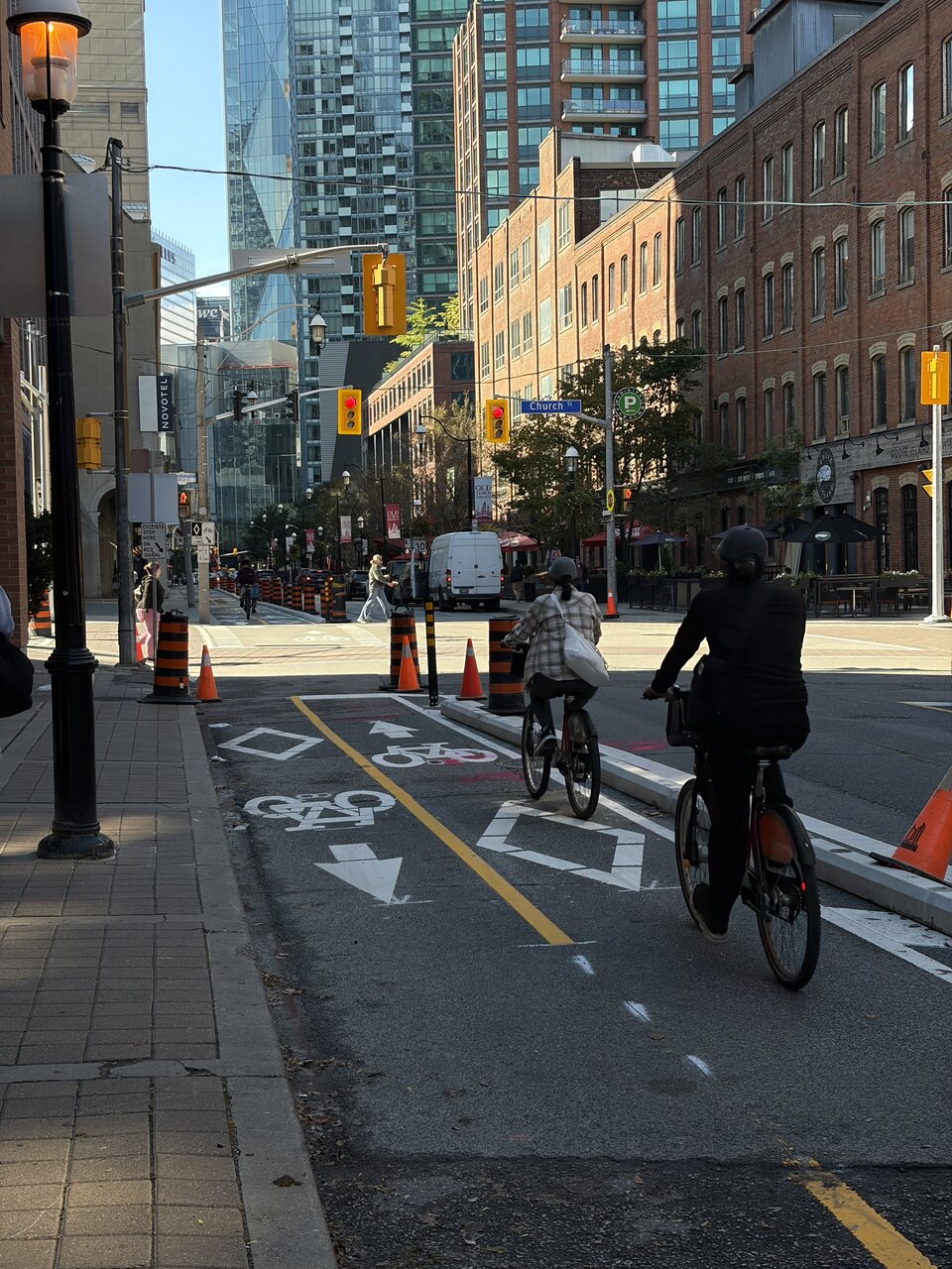 • Construction of two new blocks of cycle track between Market Street and George Street South to close the gap between the existing bikeway on The Esplanade and Mill Street, creating a continuous east-west cycling connection from Yonge Street to Bayview Avenue