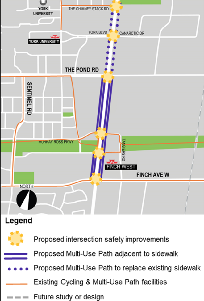 The Keele pieces look good, though I always have to do a double take at how city maps show "existing cycling facilities," like the ones on Finch West, below.
