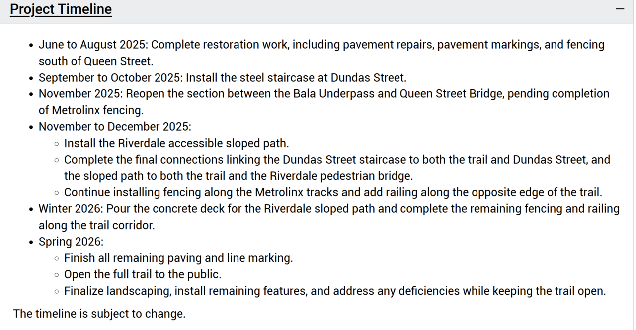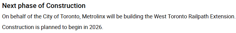 The City (and Metrolinx) are being equally sneaky with the West Toronto Railpath extension. I checked the website recently to find any updates on this project and found they now claim construction will start in 2026.