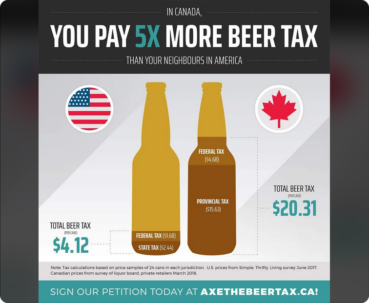 A difference of $16 for a 24 in the example above, and if you extrapolated that to 30 its an extra $20 in tax in Canada embedded in the price.
