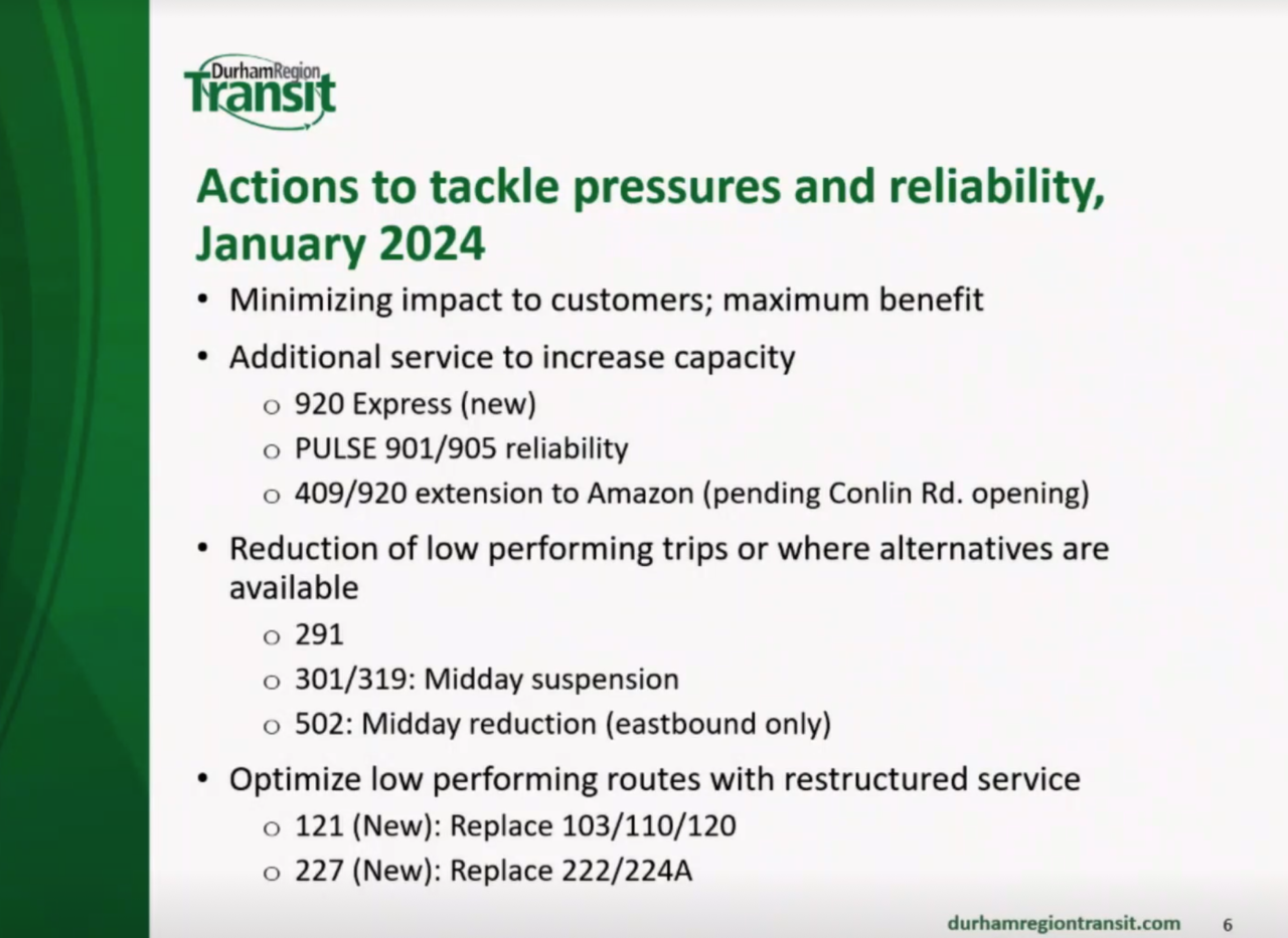 With public pressures (at least in Pickering where I am familiar) to keep the increase of property taxes well below the proposed 10% for the region, I fear there will be additional stress on DRT in the coming year. The region had a suggestion to increase funding by 2 percent next year, however, this is looking more unlikely, unless they can find significant cuts to the planned budget (or funding) elsewhere.