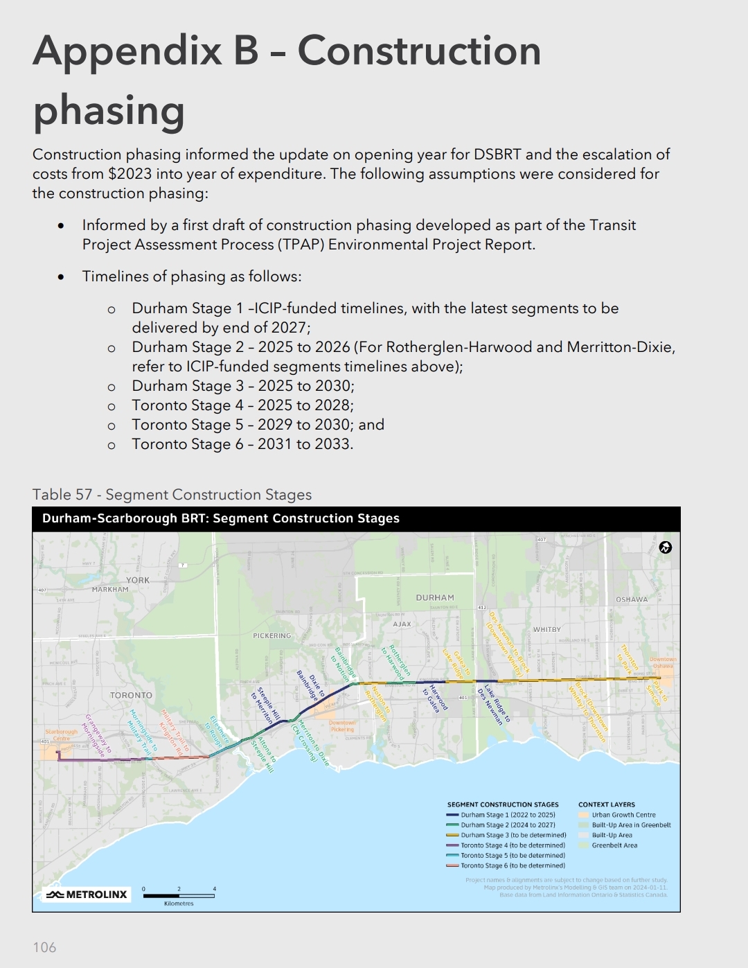 Listening to a presentation on the DSBRT from Metrolinx at Durham Regions Committee of the Whole...I have no nice words for this and am going to be blunt: what a complete waste and joke of a project this is becoming. Highly disappointed...Dropping construction timelines for the DSBRT here as I'm sure we may revisit in the future to compare against actual...appendix from the PDBC: