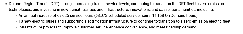 Does anyone know if those 18 electric buses will address the shortfall I mentioned above (we needed 34, got 18 diesel for '26 service enhancements)? Or were there planned purchases each year leading up to the planned service enhancements (Oct '26)? I could only find the below which suggests GHG going down slightly '25-'26 may be due to a small bus purchase...Durham Region Council adopted its 2025 budget just before Christmas, and this is what DRT got under the tree: