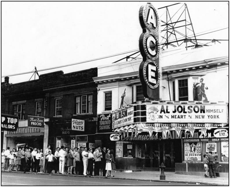 The second theater to be known as the Ace Theater in Toronto opened in 1913 as the New Onoka Theater but was soon renamed the Iola Theatre. It became the Ace Theater in 1945 and was adorned with the vertical sign spelling ‘ACE'in lighted circles on top of each other that had been on the Ace Theater on Queen Street W.