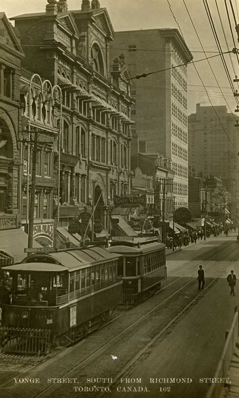 Yonge Street east side, north of Adelaide in 1911, showing the Arcade Building (TPL):