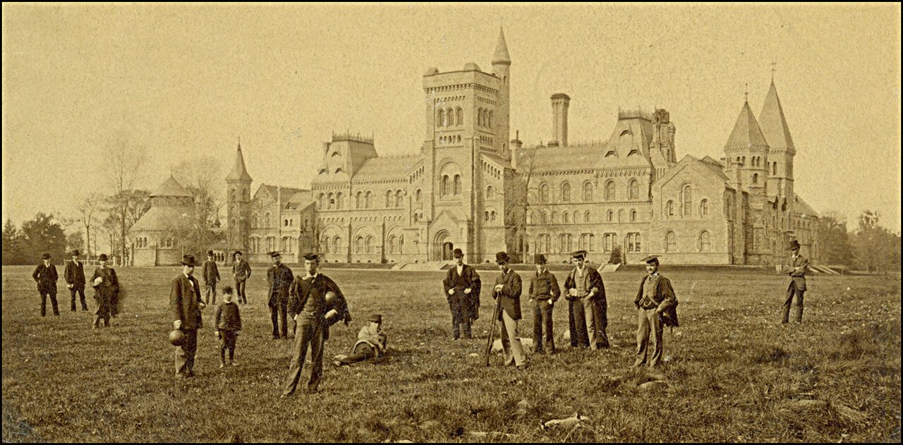 The first more unrestrained version of an university challenge quiz.U. of T. students 1880, U. of T. Archives