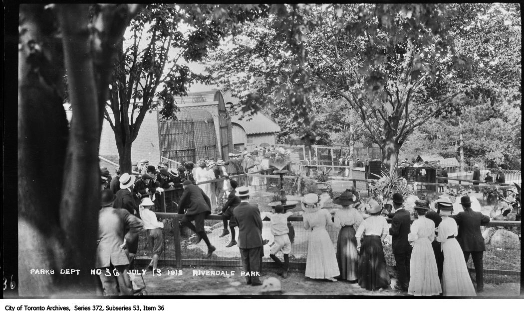 My extended family lived around Greenwood and Gerrard in the 40's, 50's and 60's. The Riverdale zoo and High Park and Cherry Beach were our getaways. They say that odours are powerful in memory - I can still smell the 'fragrance' of Riverdale, and those monkeys.Riverdale Zoo 1907