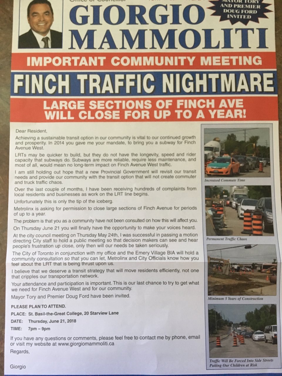"I guess you didn't hear the news. Toronto has been thrown into a parallel universe and a contract to deliver Finch West LRT is signed, sealed and delivered with Mosaic Transit Group. This discussion, and looking back over one's shoulder about what else could have been mean nothing now. All that remains is a few short years before the sound of joyful students boarding at Finch West to arrive minutes later at Humber College becomes a reality."