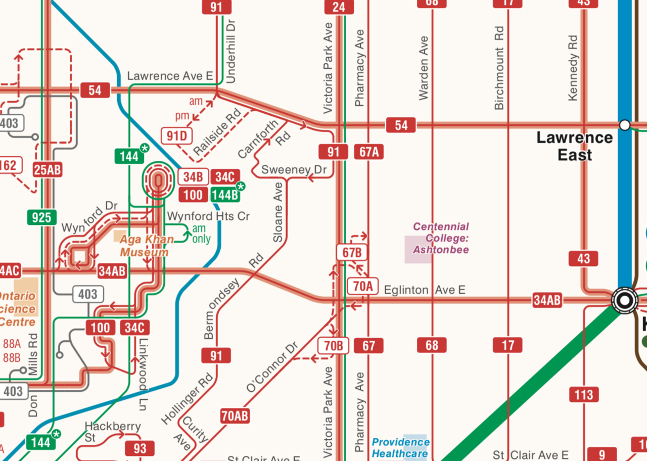Sure, the 34A looks like it sees relatively pathetic service by todays standards, and that's fine, but we also have to consider every other bus route that crosses the Eglinton Corridor in the East: