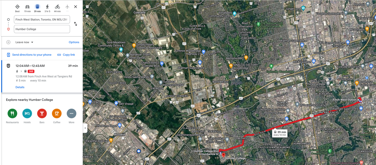 I'm looking at google maps right now (midnight) and it's telling me the 36B will go from Finch West to Humber College within 39 minutes. Roads being empty at midnight would be similar to dedicated bus lanes with fewer stops, no?