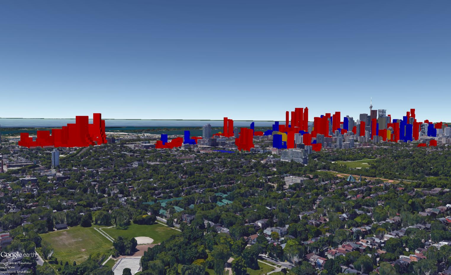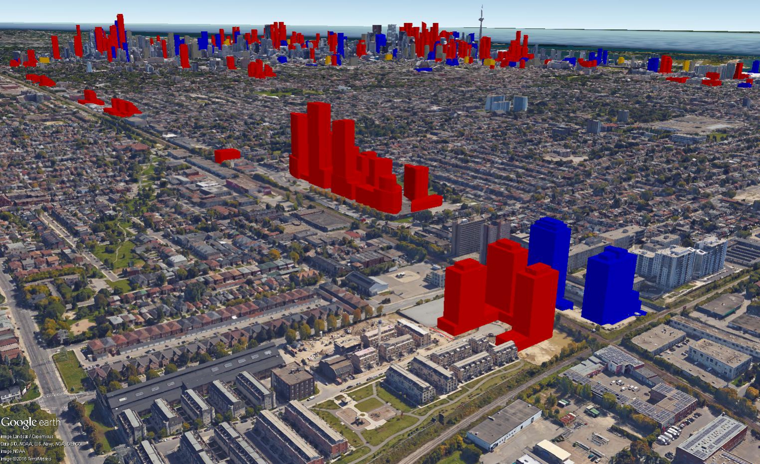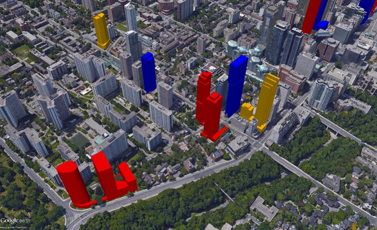 The entire block bounded by Duncan, Adelaide, Pearl, and Simcoe in the entertainment district now has development applications filed. Insane density proposed there, and everywhere else in the entertainment district for that matter. There are a lot of applications in the area, but it appears that few of them are actually progressing to construction. 19 Duncan and 357 King West are both rental proposals so they should move soon, and a couple of condos seem to be preparing to launch, but there are still a lot of red buildings here compared to what the market can likely absorb.