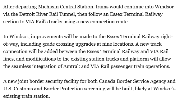 VIA/Amtrak would then either have to crawl through Windsor on the Essex Terminal Railway, or follow CP tracks to where they cross the CN/VIA line west of Chatham.