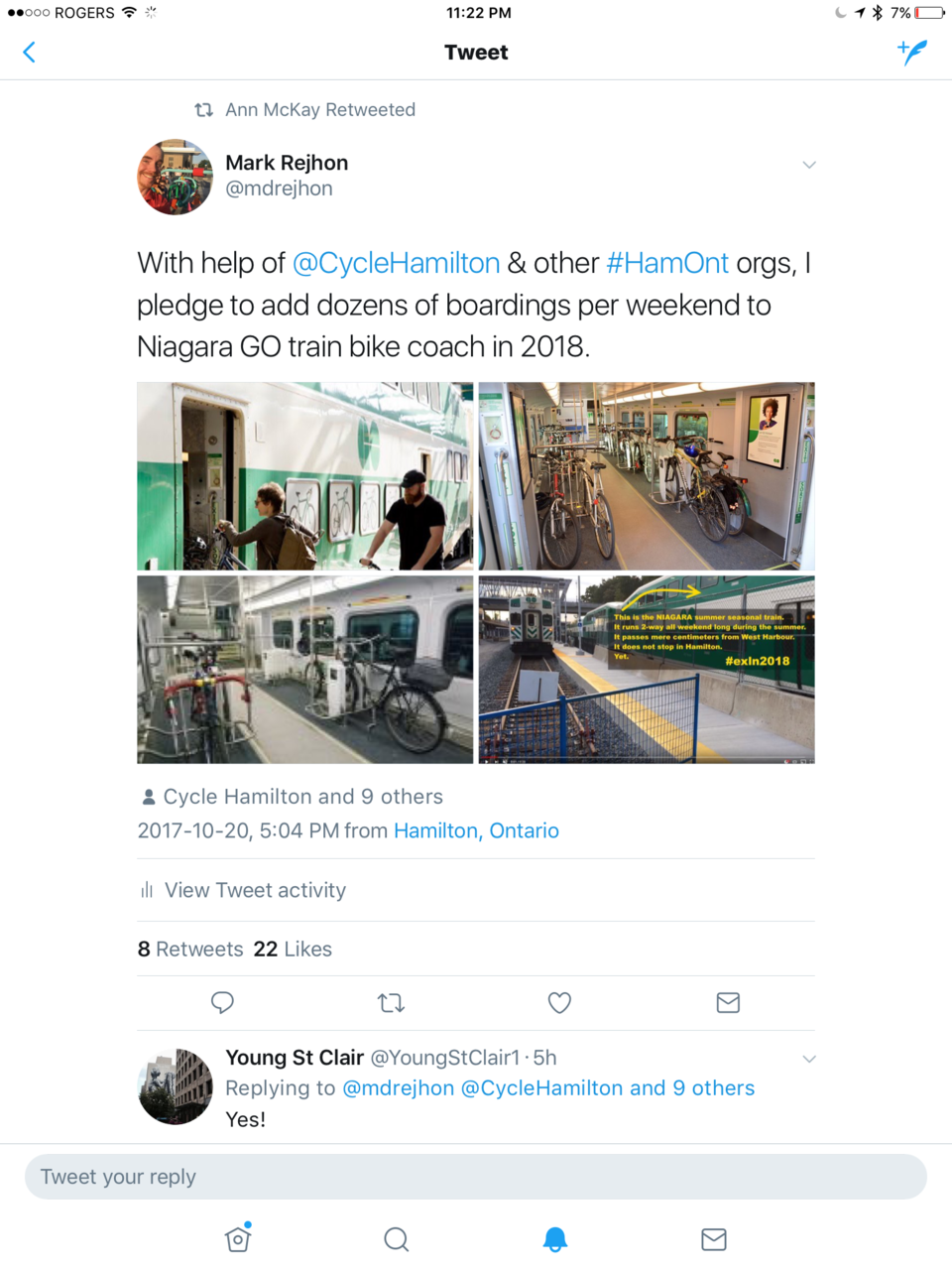 Note: My spouse (Alain H. Bureau) is a frequent attendee of many Hamilton cycle meetings, and my spouse is now well-known in SoBiHamilton/CycleHamilton/BikeForMike/etc circles, as well as being a major part of the Hamilton LRT Advocacy run by residents. I think we genuinely can bring traffic to the Niagara seasonal GO train in Hamilton.