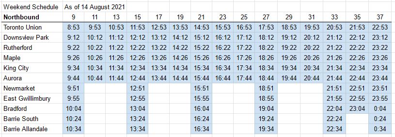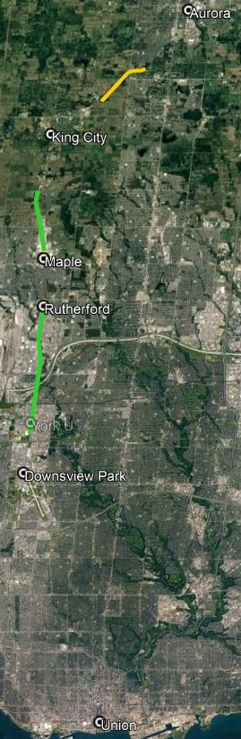 The more interesting notion is that the trains to Barrie would slot in between the hourly services, passing them at this new siding and another new siding exactly 30 minutes south of it (somewhere around Eglinton). That way the base hourly service could arrive and depart Aurora regularly rather than every third train needing to go sit a time out for an hour while the Allandale services pass by.