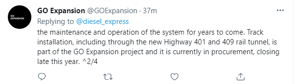 No. I interpret it as:My understanding is that the track work for the tunnel is on procurement, and they hope to have it finalized late this year. I think the full electrification contract is still sometime next year?