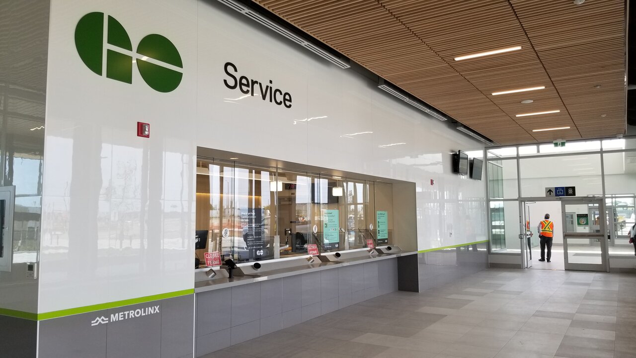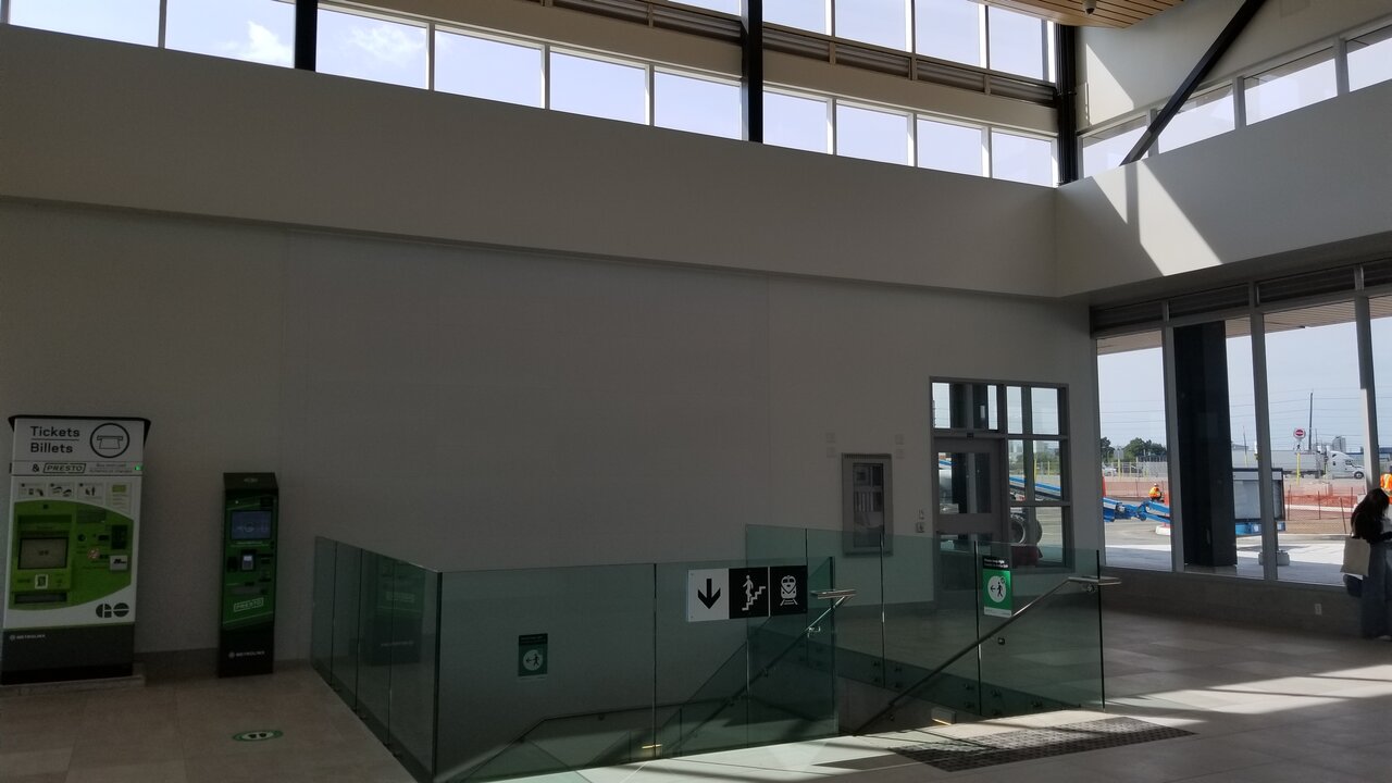 The washrooms are separate from the service counter and are barrier free, a big improvement over the single-use lavatories. The new bus loop is under construction, but it will be a big improvement once completed, with a fully sheltered path between bus and train.