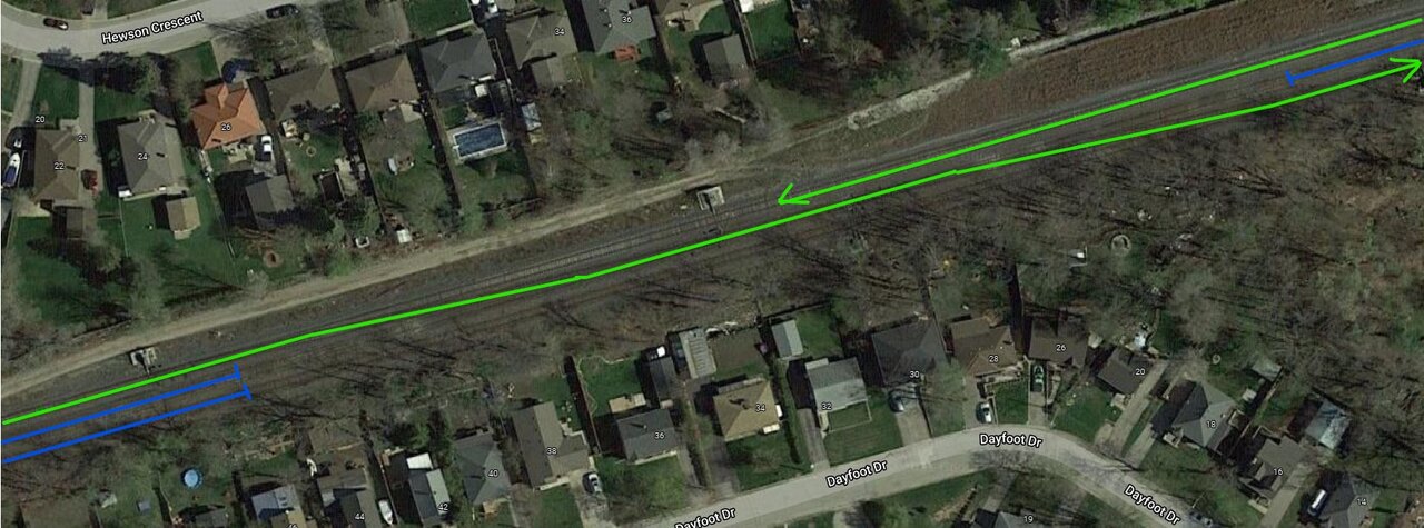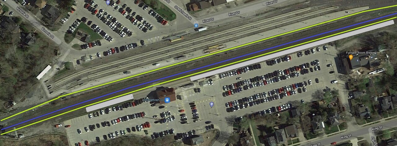 There seems to be enough space to lengthen the south platform to GO's standard length of 314 metres. Eastbound and westbound trains would meet here.