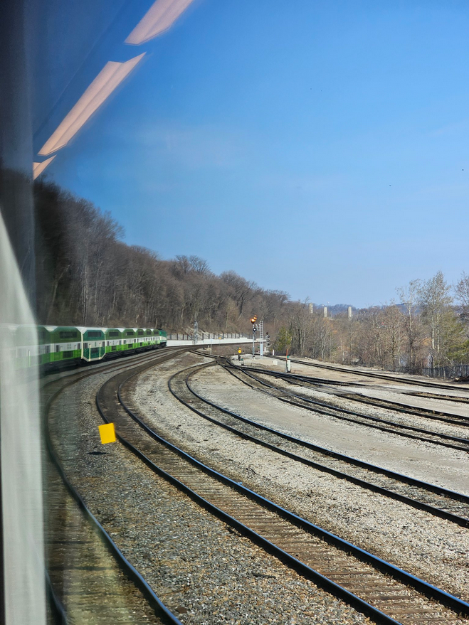 My friend group meets for brunch at Frannie's every Saturday, so I drive under the Kitchener line at Shantz Station Rd weekly. There's definitely been a lot of grading work at the northwest corner of the bridge embankment in the past month. Secretly I was hoping that they were setting up to twin the bridge, as I believe the abutments were built large enough for two tracks, and the north side is where the second span would go.