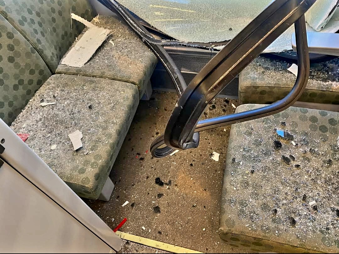 What caused this?Absolute devastation on a GO train, completely smashed in window