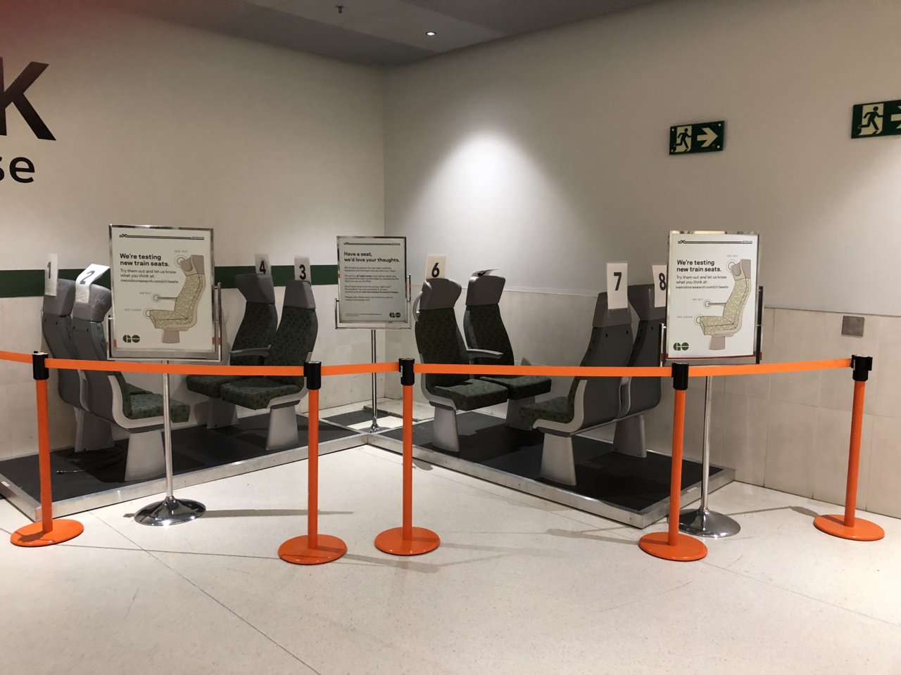 They were blocked off on the weekend, when the consultant's reps are not present."We're testing new train seats" as they block them off from public testing.