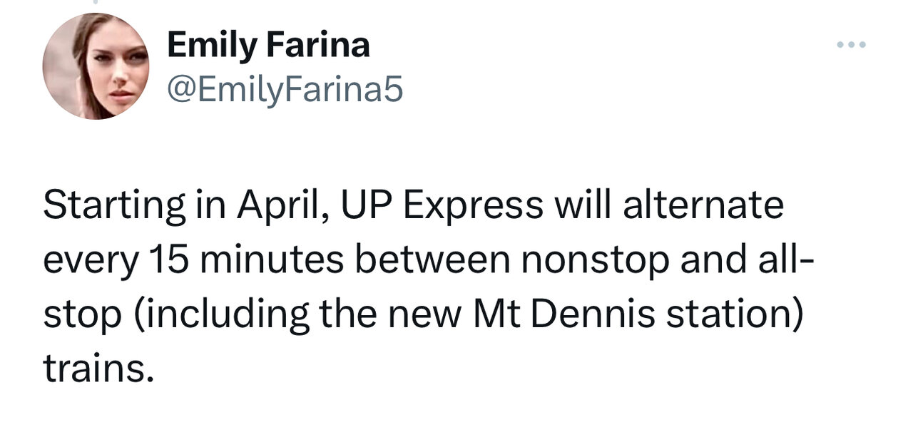 If they were to implement alternating express and local service on UP Express, they would presumably time it with expanded local service on the Kitchener line to maintain a regular 15-minute headway at Weston and Bloor (alternating between Kitchener Local and Airport Local), so if the 30 min service to Bramalea is in fact starting, then the UP express/local change could plausibly accompany it.