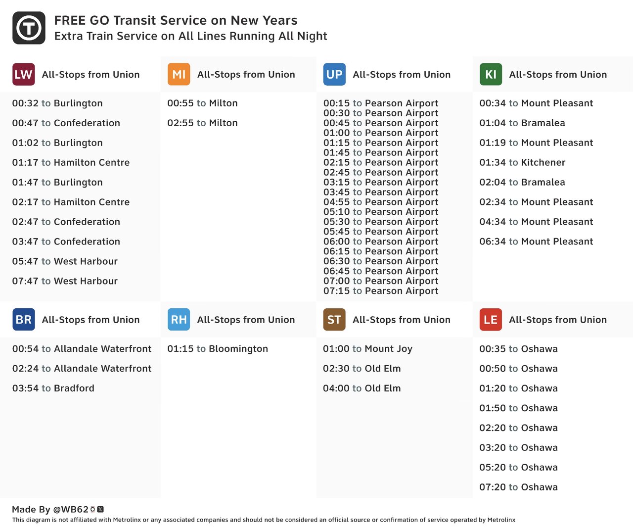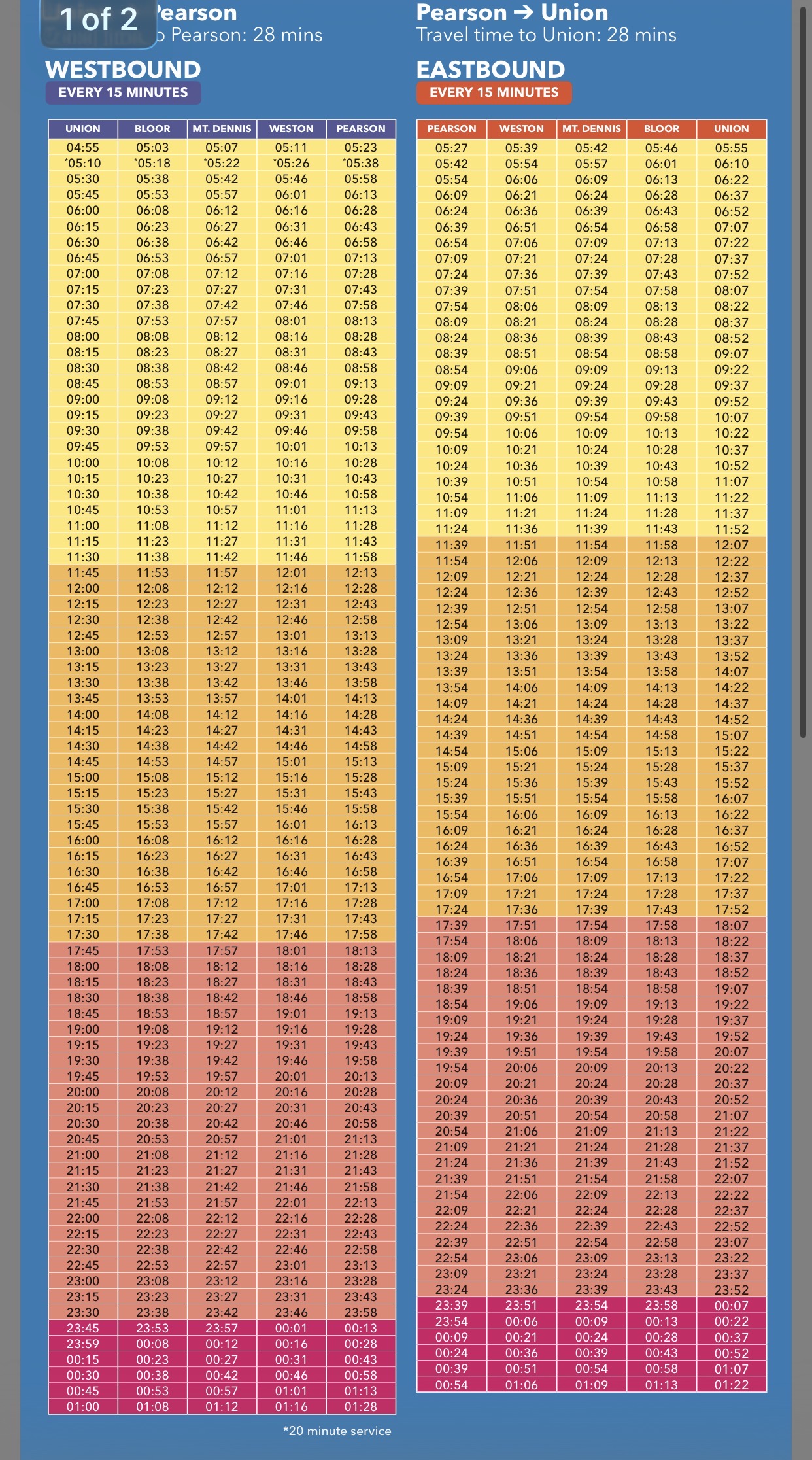 On the post from UP Express they give a very different schedule, too: