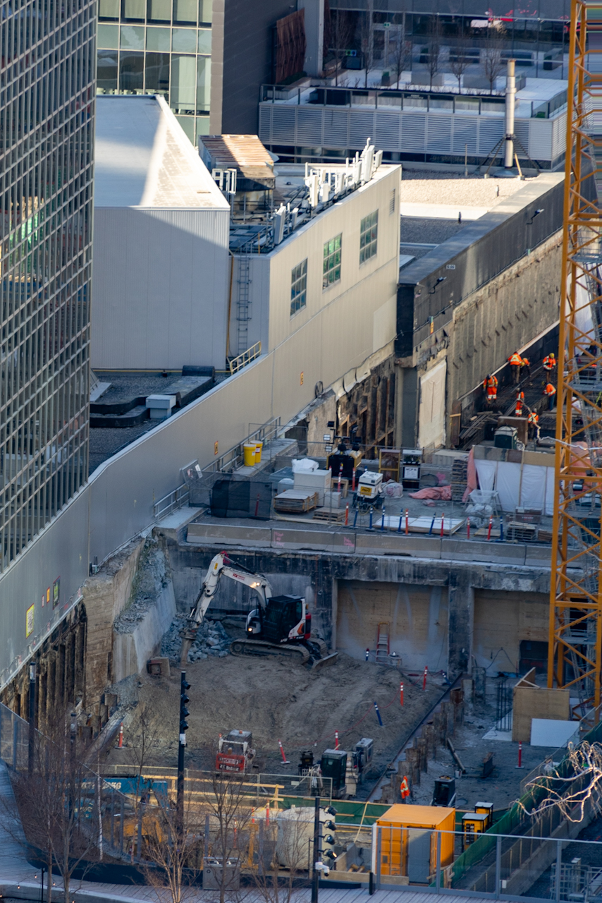 The west bridge seems to come out above what will eventually be the former UP Express terminal in the Skywalk.