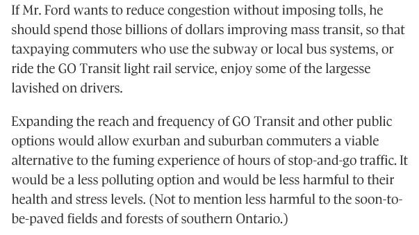 And I certainly don't support Ontario funding this tunnel under the 401.